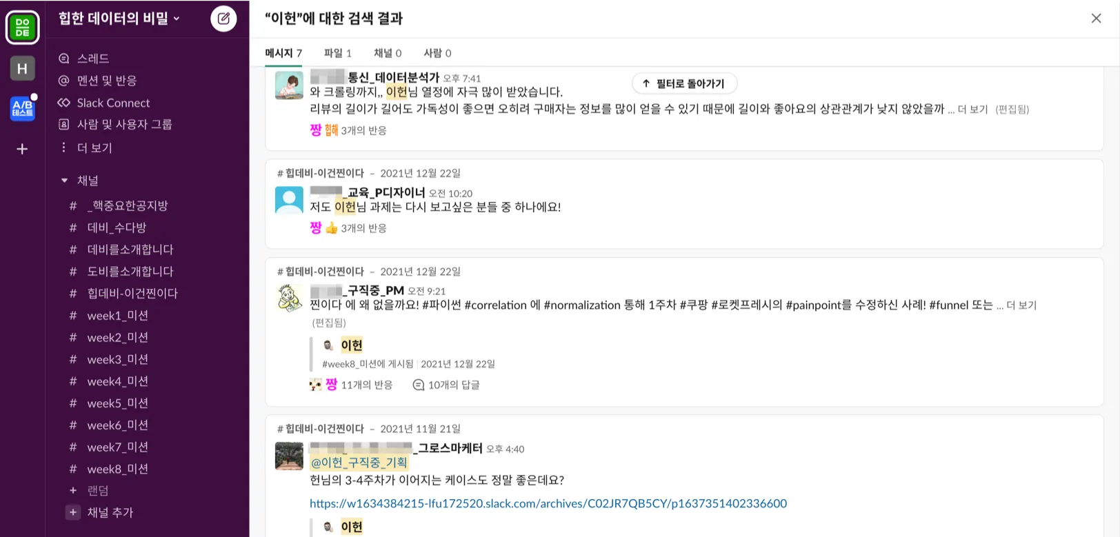 기억에 아로새겨진 8주였습니다. 특히 자리 만들어주신 운영자님께 너무너무 감사드립니다.